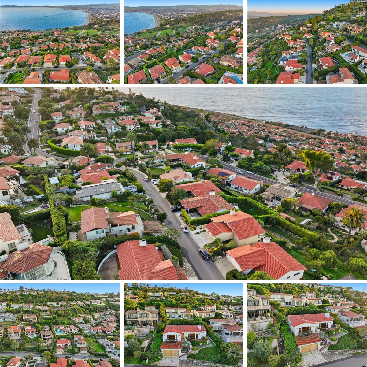 Queen’s Necklace Views! Breathtaking, panoramic vistas of the Queen’s Necklace, city lights, mountains, and Downtown Los Angeles define this exquisitely custom-remodeled 2-bedroom, 3-bath home in sought-after Malaga Cove—a truly rare offering. The home features a thoughtfully designed open floor plan with stunning views from most rooms, complemented by custom cabinetry throughout that adds both beauty and functionality. The gourmet kitchen is a showpiece, featuring an oversized center island with white marble countertops and seating for six, top-of-the-line appliances including a Wolf 6-burner range and oven, Dacor refrigerator and freezer, Bosch dishwasher, hand-forged brass fixtures, and oak hardwood floors. A spacious dining and family room flows seamlessly from the kitchen, with doors opening to an ocean-view balcony. The inviting living room includes a fireplace and opens to an outdoor patio—perfect for entertaining and enjoying the coveted Malaga Cove lifestyle. The generous primary suite offers direct access to the rear patio and a beautifully remodeled bath with marble countertops, shower, and flooring. The second bedroom is currently used as an office, 2nd bathroom is a full with tub and shower, white marble counters, and finishes. A separate utility room with laundry, built-in workspace, 1/2 bath, and convertible daybed provides flexibility for overnight guests. The private backyard serves as a peaceful retreat—an ideal refuge to unwind, relax, and take in the serene surroundings. The home also has a finished two-car garage currently converted into a private at-home gym, which can be enjoyed in its current form, A rare opportunity to own a move-in-ready home with iconic views, refined updates, and an exceptional Malaga Cove location.